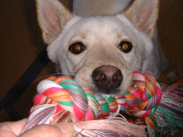 必死でひっぱりっこしてる時のワンコの顔って最高ですよねぇ。私も大好きですっ!!!