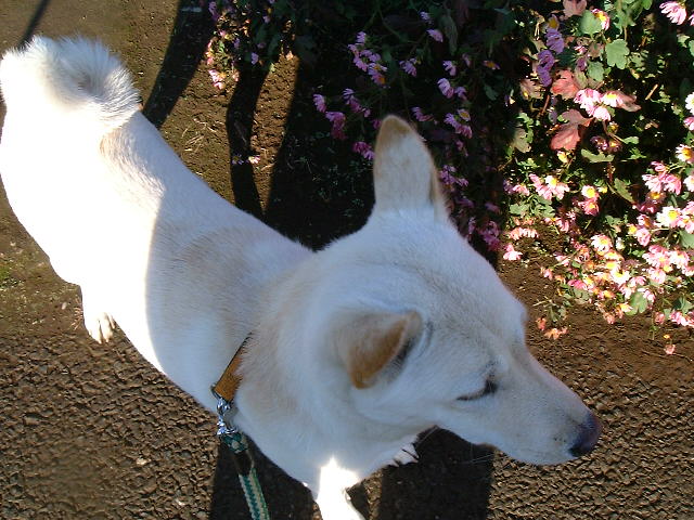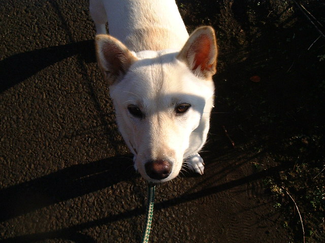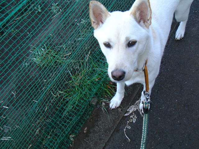 散歩の途中、少しづつですが、アイコンタクトの練習もします。