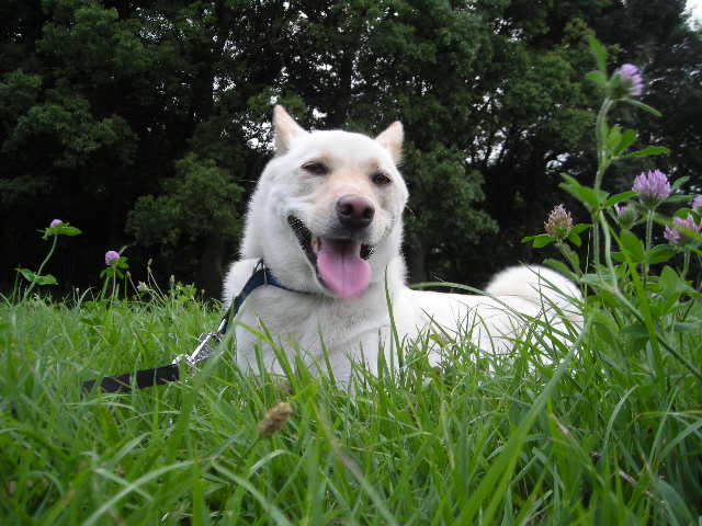 家の周りのアスファルトは焼けていても原っぱなら歩けるもんね。