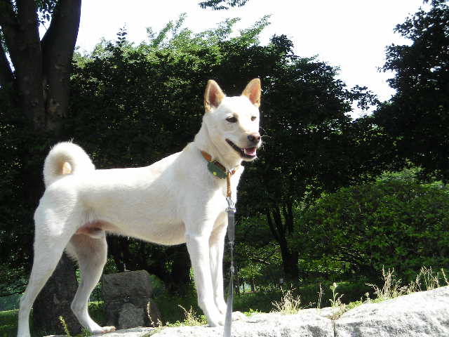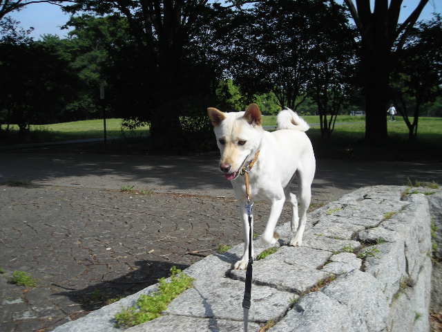 十兵衛もちょっと高いとこ大好きです。縁石とかもゼッタイ登る!