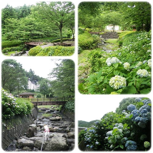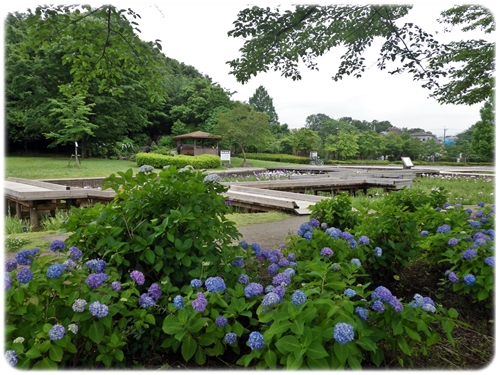 この時期はアジサイと花菖蒲がきれいなせせらぎ菖蒲園です。