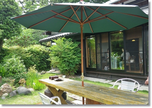 ひとつしか無いワンコOKのお庭の席。 やった~今回は他に誰もいないみたい♪