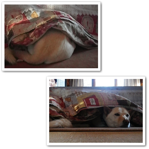 寒い冬に遊びに来たとき、気持ちよかったコタツが忘れられないみたい(笑)電源入ってないけどね