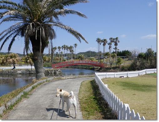 園内は南国風な感じでワンコと一緒にお散歩できます。
