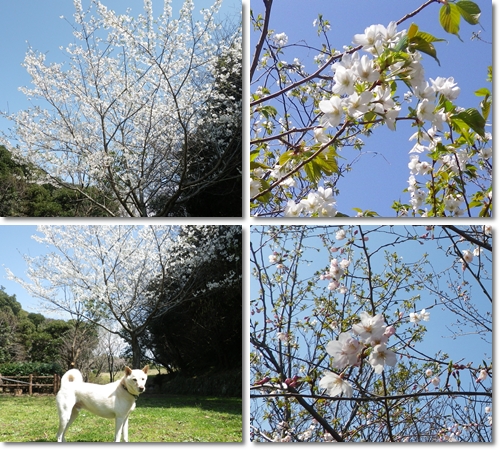 お目当てのオオシマザクラは白くて可憐な桜。園内いっぱいいたるところで満開に咲いてました。