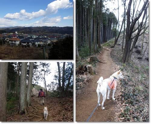 閑静な住宅街の広い歩道を30分ほど歩いて多峯主山の北側斜面の登山口へ