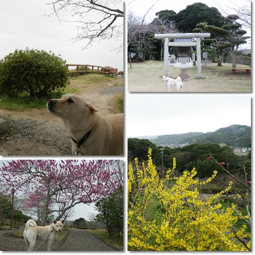 さすがに山頂の桜はまだ蕾だったけど、椿の径の椿、梅園の梅、