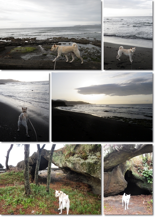 波で削られて洞窟みたいな場所もあって空と一緒に歩くの楽しい