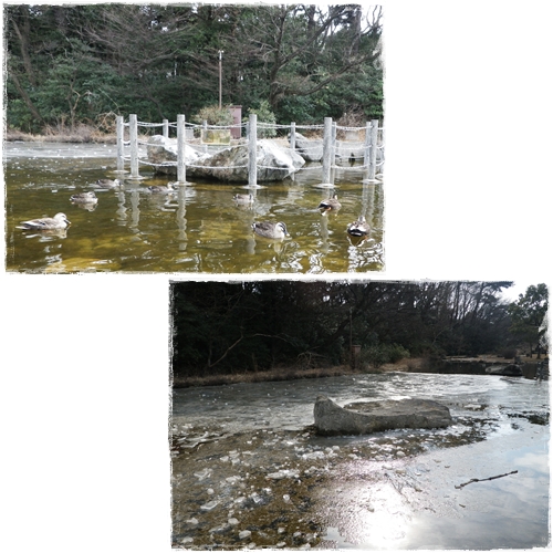 公園の池もパリパリに凍ってました・・・