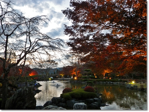 山頂を踏んで、また日本庭園に帰って来た時はもう本当に真っ暗になっちゃって