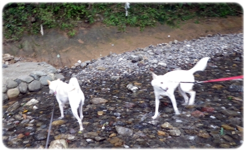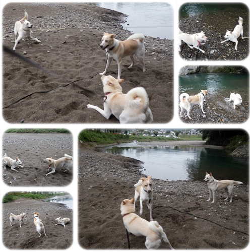 まず先に犬たちにご褒美の川遊びです!お水、澄んできれいでしたよ~