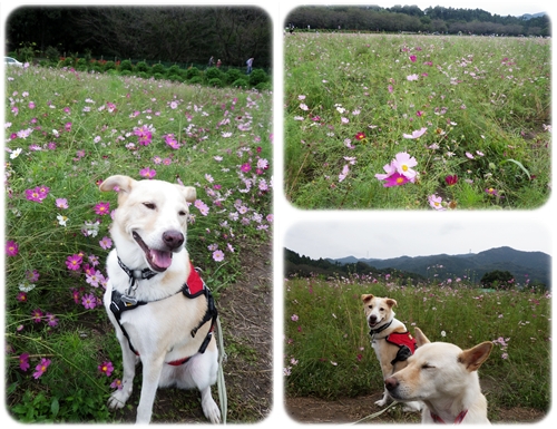 コスモス畑はこんな感じ・・・先の台風で全部倒れちゃったんだって~