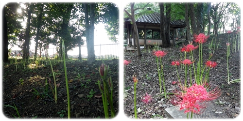 来週またこの公園に来る予定だから、その時まで真っ赤な彼岸花はお預けですかね。