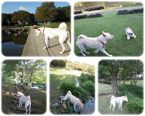 緑地公園では小型犬ちゃんが遊ぼう遊ぼうって誘ってくれて