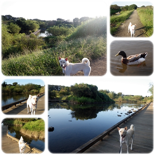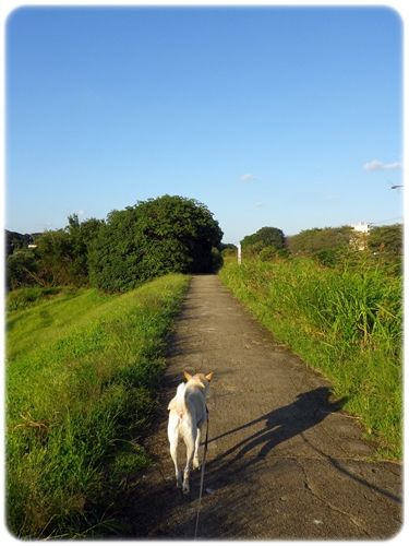川にはあんまり入らなかった3ワンだけど、みんな長いリードにしてもらったら