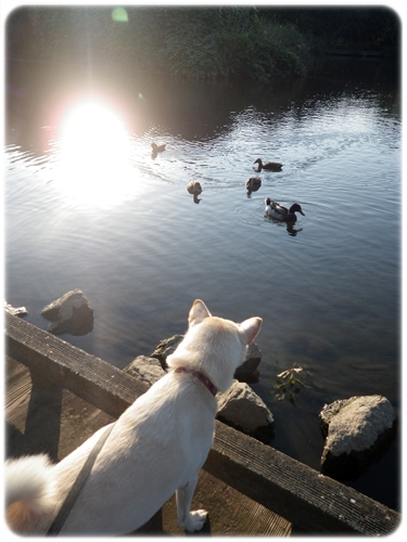 人なれ犬なれしてる鴨さんたちで、空が覗き込んだら、何かもらえると思ったのかスィスィスィ~って泳いで寄ってきてくれました