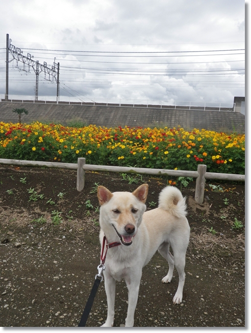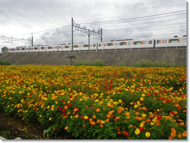 コスモス畑沿いに流れてる黒目川~~