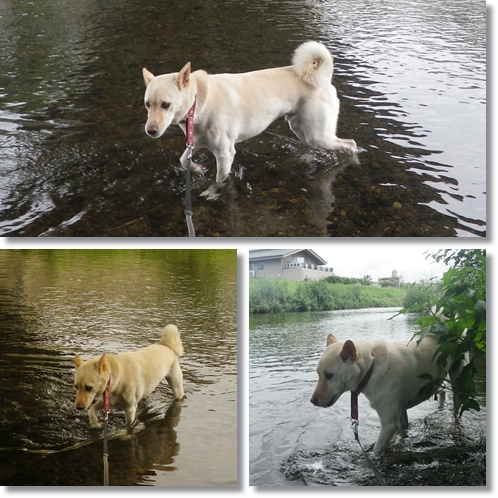 ランを出た後はしばらく水辺でチャプチャプ遊びを楽しんで、