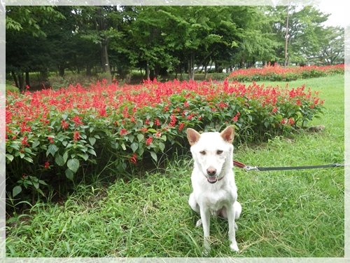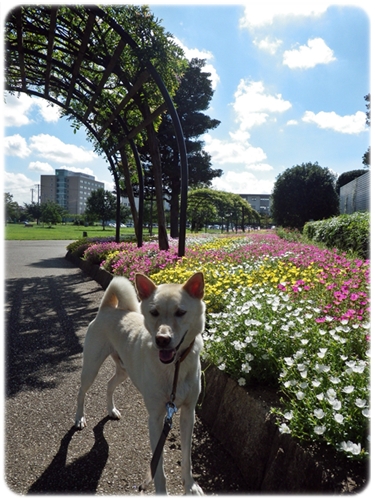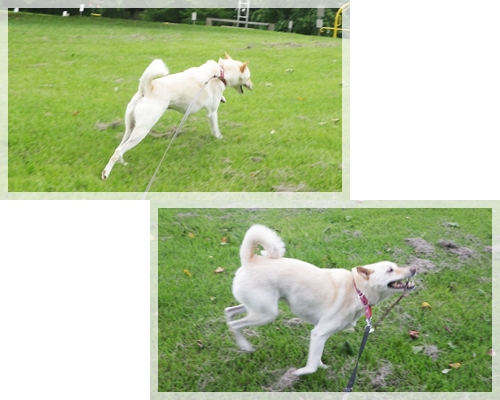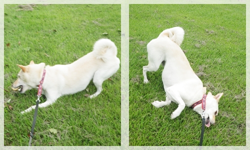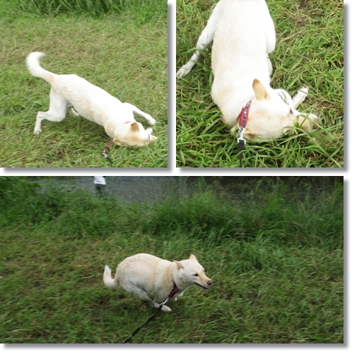 芝生の公園では濡れた体をスリスリして、今日の空は終始ご機嫌でした!