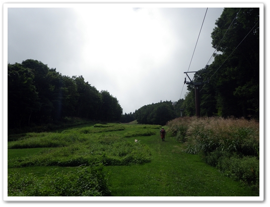 日影がないゲレンデを歩くと暑いけど、日影の散策路はものすごいヒンヤリ。とても気持ちがいいです!