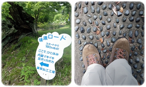 園内には健康ロードっていってゴツゴツの石の道や、青竹踏みなどの遊歩道があったんだけど