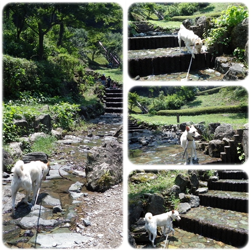 園内は小さなせせらぎも流れていたので、空はここでもお水歩き♪