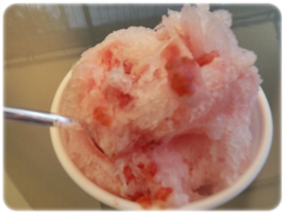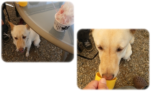 私と義父はイチゴミルクのカキ氷。パパさんは黒みつきなこ。義母は宇治抹茶だったかな~♪