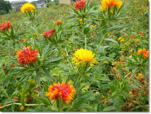 おばさんいわく、最近の新しい紅花にはトゲがないそうなんだけど