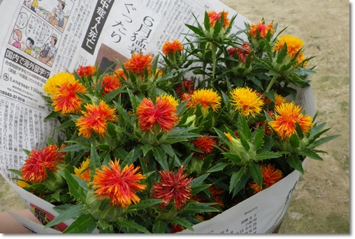 昔からあるトゲトゲがいっぱい付いたタイプの紅花がドライフラワーには最適なんだそうです^^