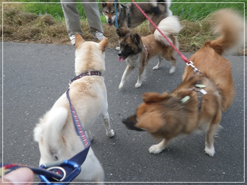 お散歩を楽しんでたら、リキちゃんのお友達のピッチくん&シドニーくん、