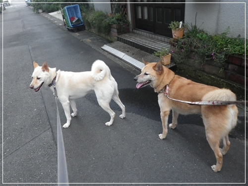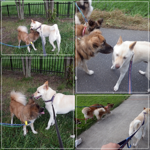 暑い暑い中のお散歩は毎日ちょっと憂鬱だけど、お友達が一緒だと楽しいね