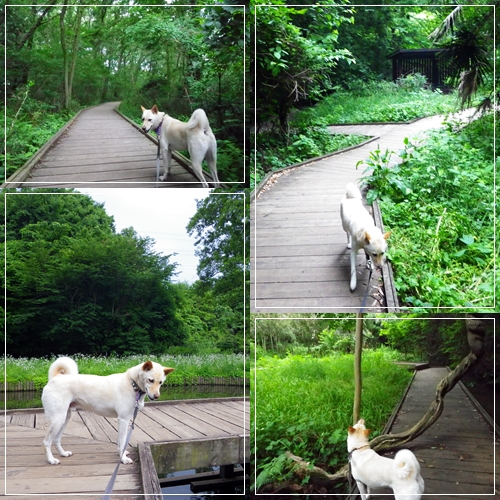 キャンプ場の前を通って自然生態観察園の木道を楽しく歩きながら菖蒲園を目指します^^