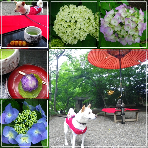 パパさんはお団子、私は紫陽花の和菓子と抹茶のセットをお庭の席でいただきました。