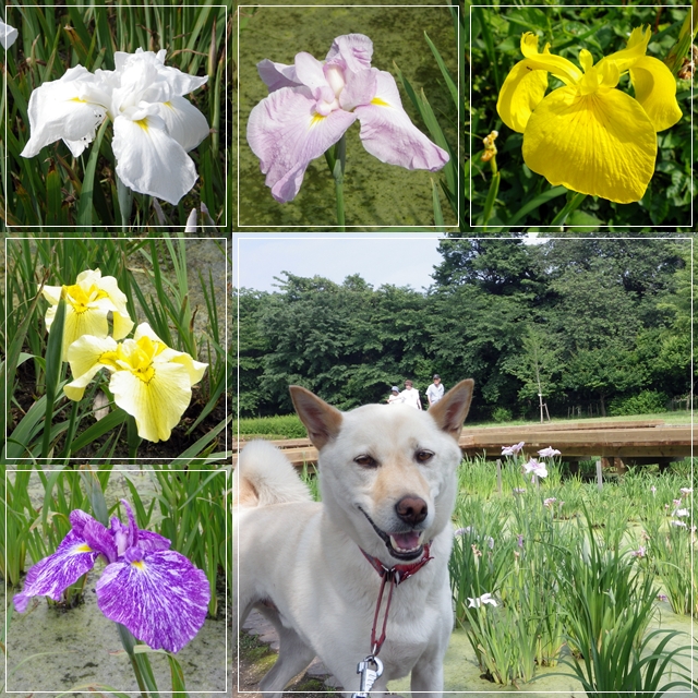 右上の黄菖蒲は、菖蒲園以外の公園の隅っこに咲いてたけど、