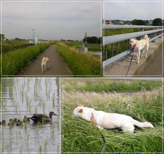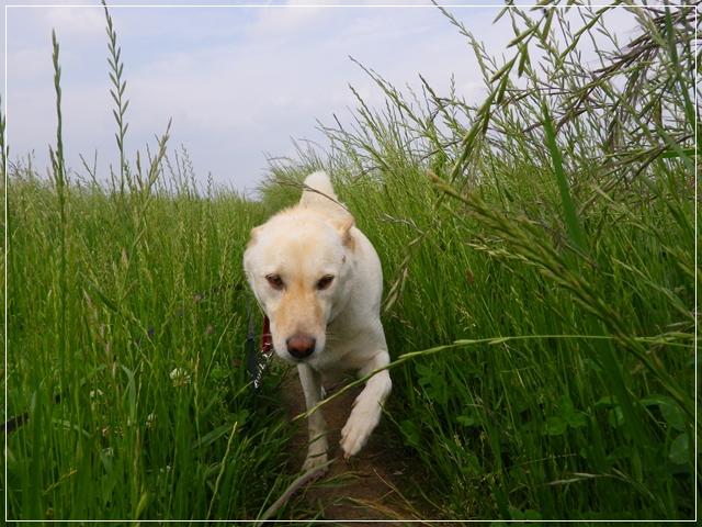 すっかり伸びてしまった土手の草に大興奮でクルクル始まりました~~!