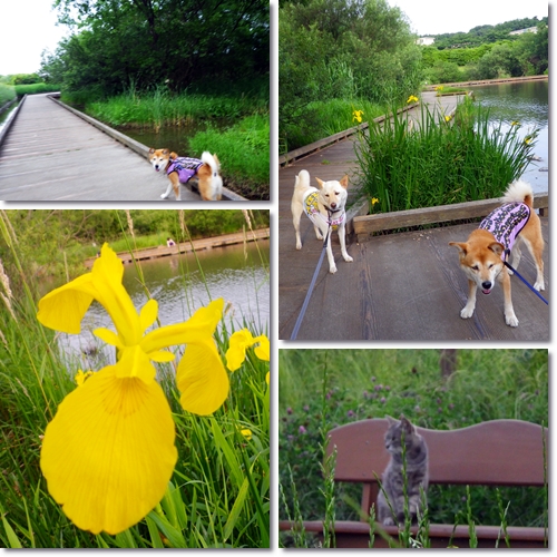 公園内も、遊水地も、黄色い菖蒲でいっぱいでした!
