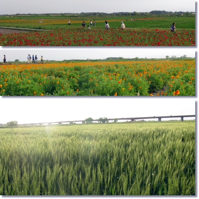 赤いポピーは咲き始めで、ピンク色は数える程度