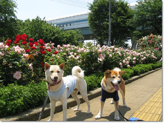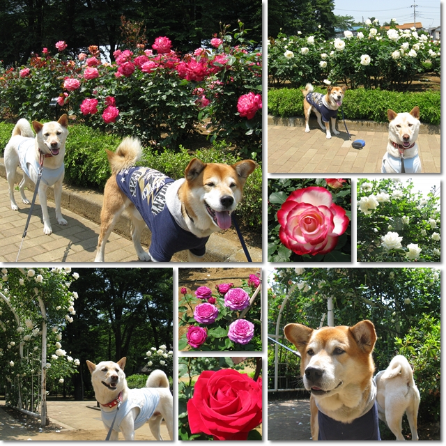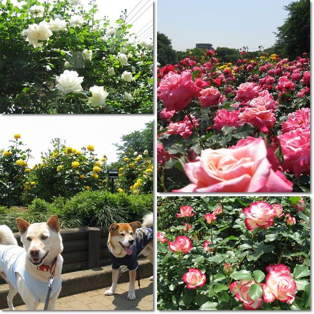 ワンたちには暑かったみたいだったので、バラを楽しんだ後は園内の木陰を気持ちよく歩きました。