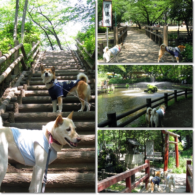 園内のすりばち山を登ったり、噴水の池でマイナスイオンを浴びたり、弁天様にお参りしたり・・・