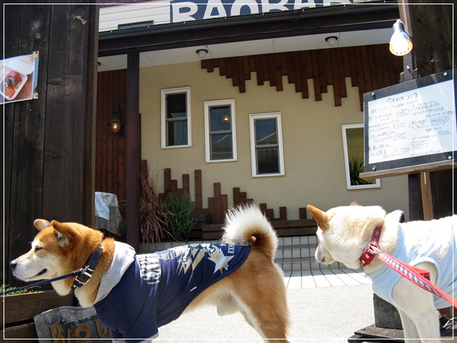 店前で記念撮影をしたいのに、空もりくちゃんも早く入りたくてちっともカメラを見てくれませんでした(^^ゞ