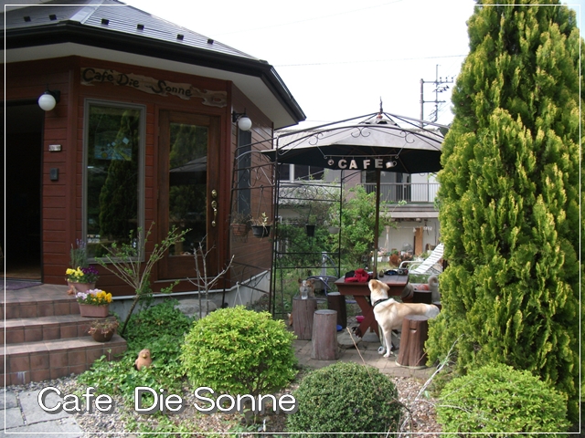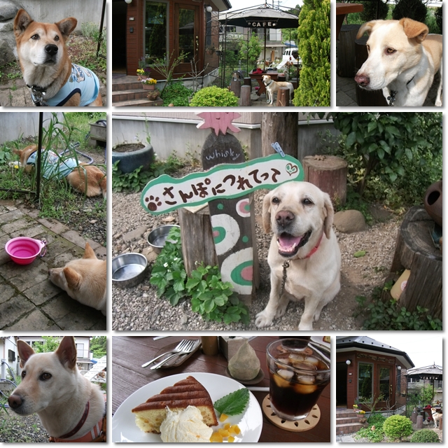 ワンちゃんOKのお庭の席について、ママたちは春の名前がついた手作りケーキを注文!