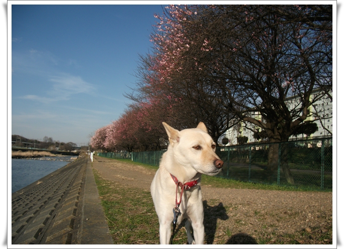 桜で有名なこの柳瀬川回廊ですが、よくよく見るとちょこっとだけ梅が咲いてる場所がありました^^