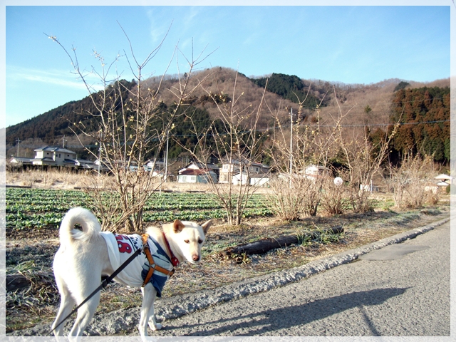 どんどん歩いていくと、正面に宝登山が見えてきましたよ~