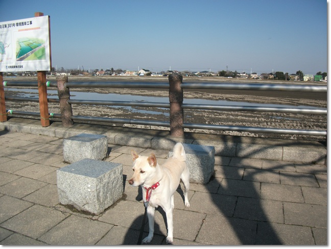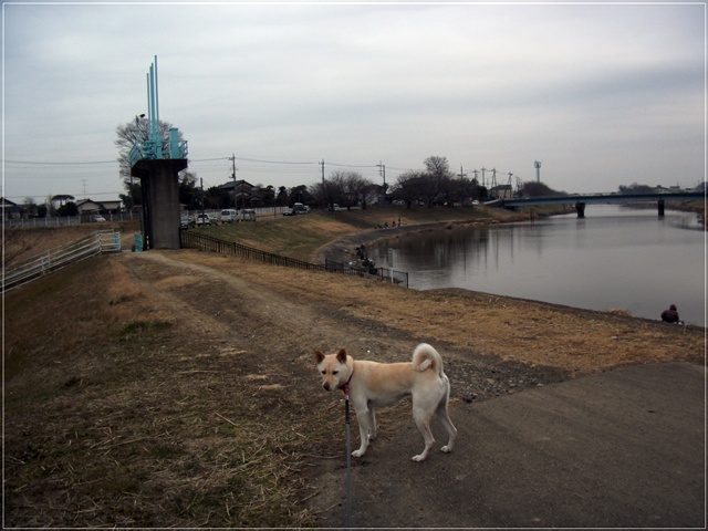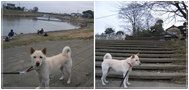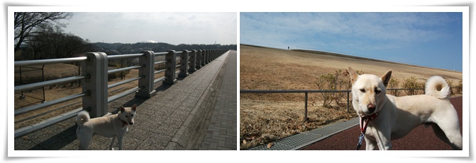 堤防の斜面の遊歩道を上がったり下りたりしながらジグザグに何度も往復して歩きました^^