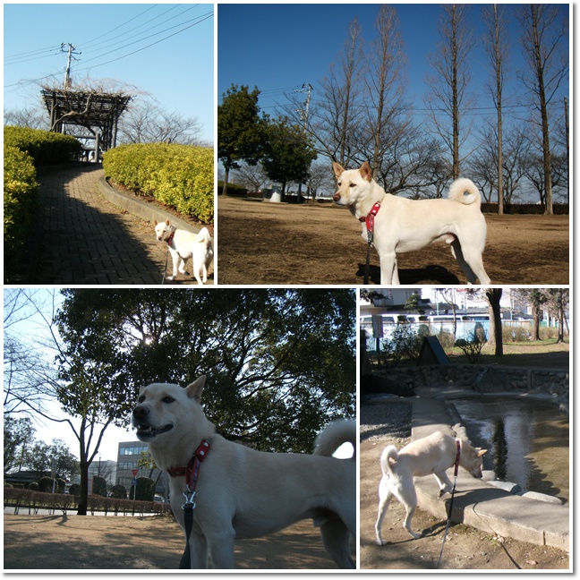 夕方のお散歩は、やっぱり我が家の近所の貝塚公園へ立ち寄って、