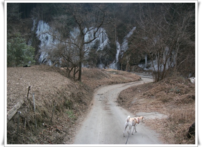 車道から川原のほうへテクテクと下ると・・・ひさつき平がや氷柱に着きました・・・