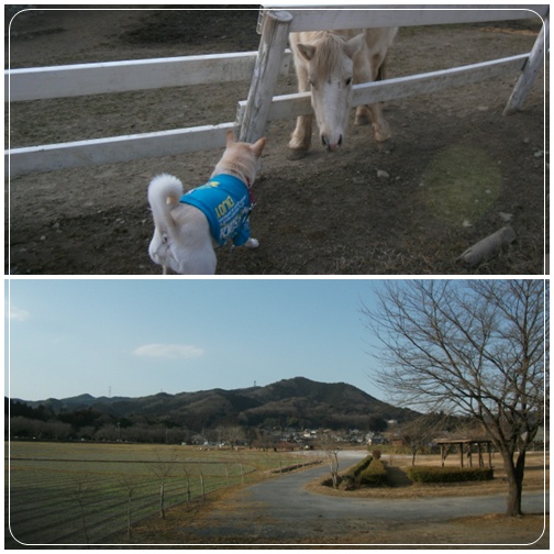 巾着田には牧場もあるので、尻尾フリフリでお馬さんにご挨拶してた空でした♪