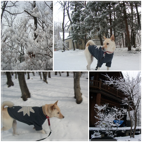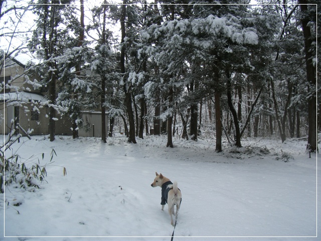 朝は枯れ枝と落ち葉だらけだった別荘付近が一面銀世界に変わっていました~~