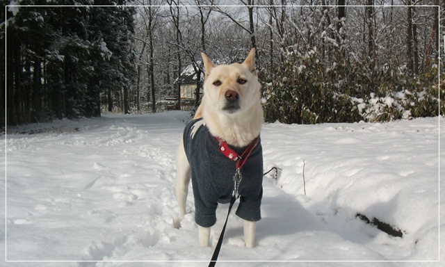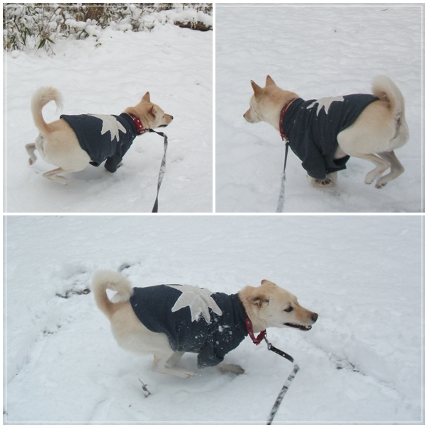 日陰には雪が少し残ってて、寒がりな空でもやっぱり雪は嬉しいみたいで大興奮です!