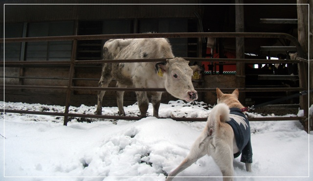 犬以外の他の動物が大好きな空は子牛さんとも仲良しです♪